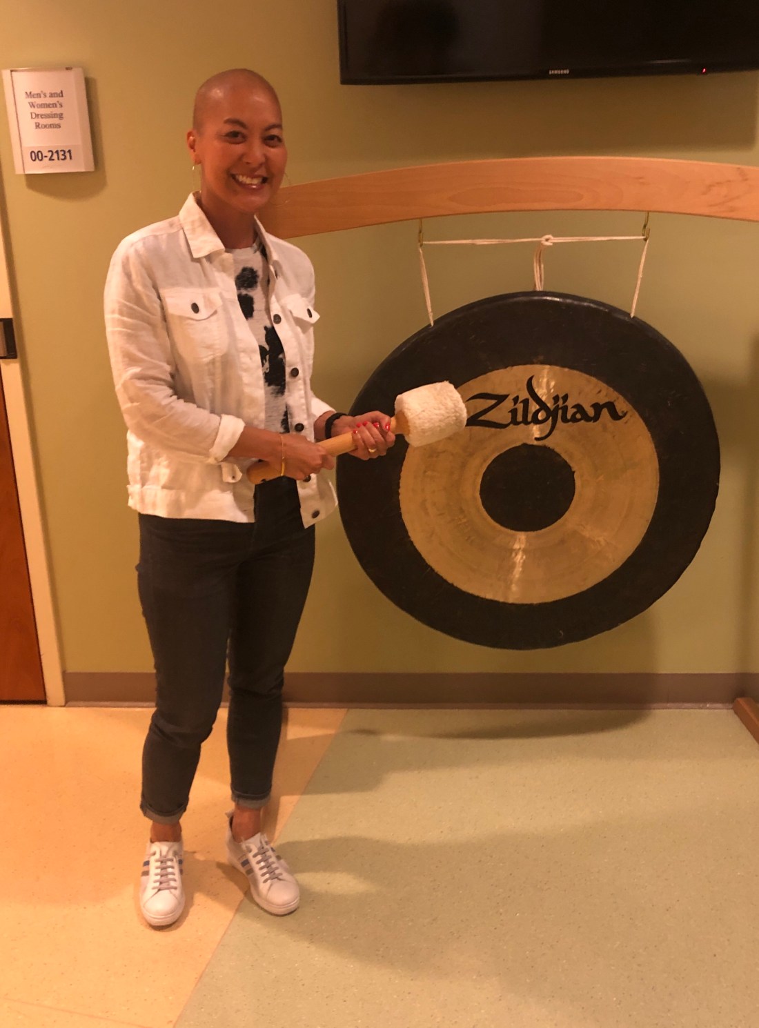 Banging the gong after my last radiation treatment