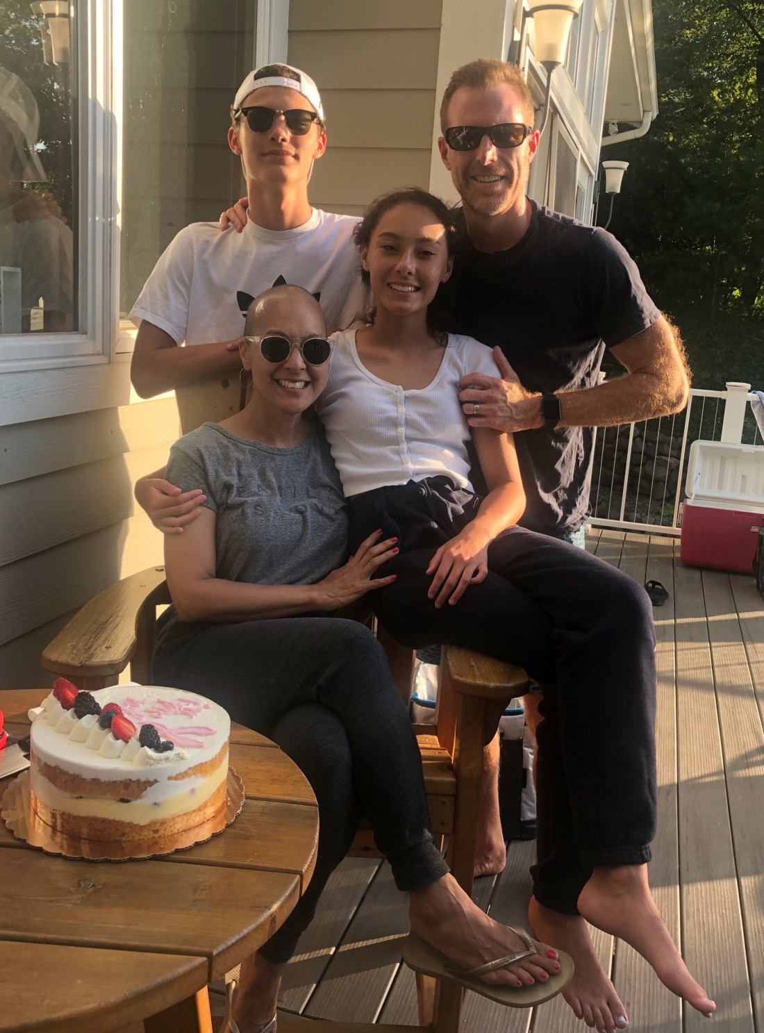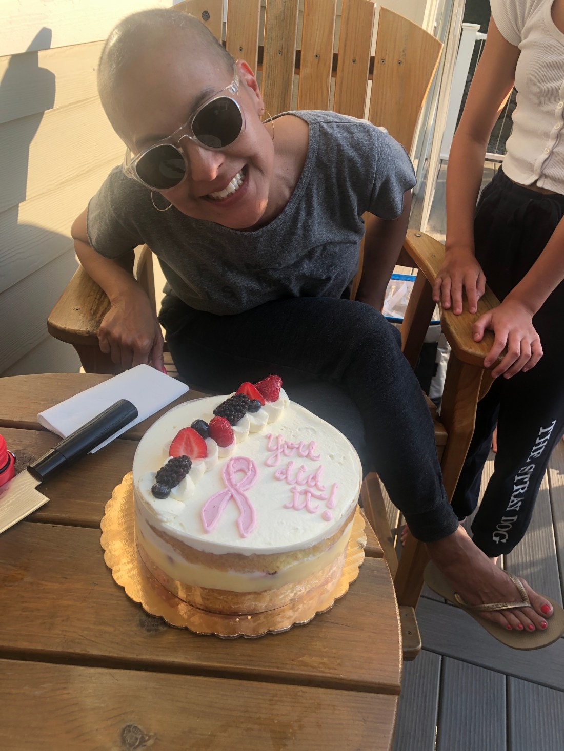 Aside from all of that, my eyelashes all fell out! It was so annoying. I thought I’d be more self conscious, but as Dillon so gently reminded me: “No one is noticing your eyelashes. You’re bald… they’re noticing your head.” Good point. Gotta love the directness of a 15 year old boy. Speaking of being bald, the hair on my head has just started growing back in and it’s a cool mix of black and grey. It’s as soft as a duckling and I can’t stop touching it.
